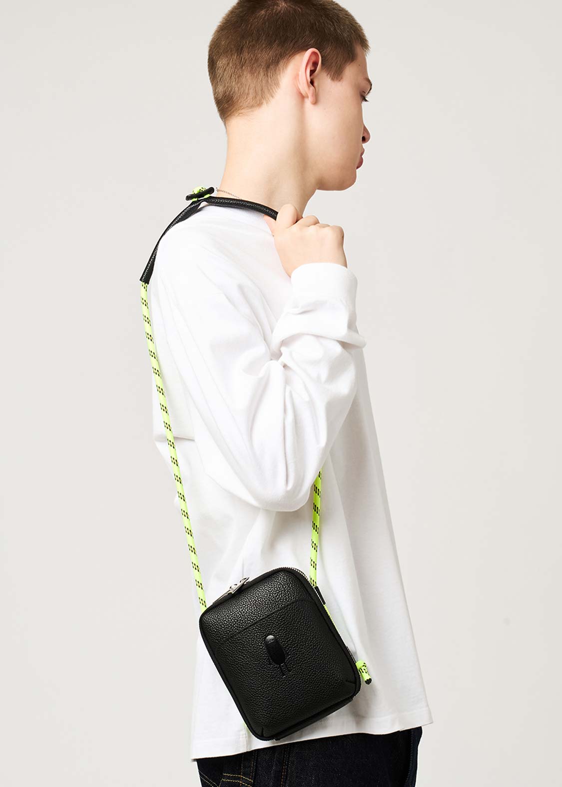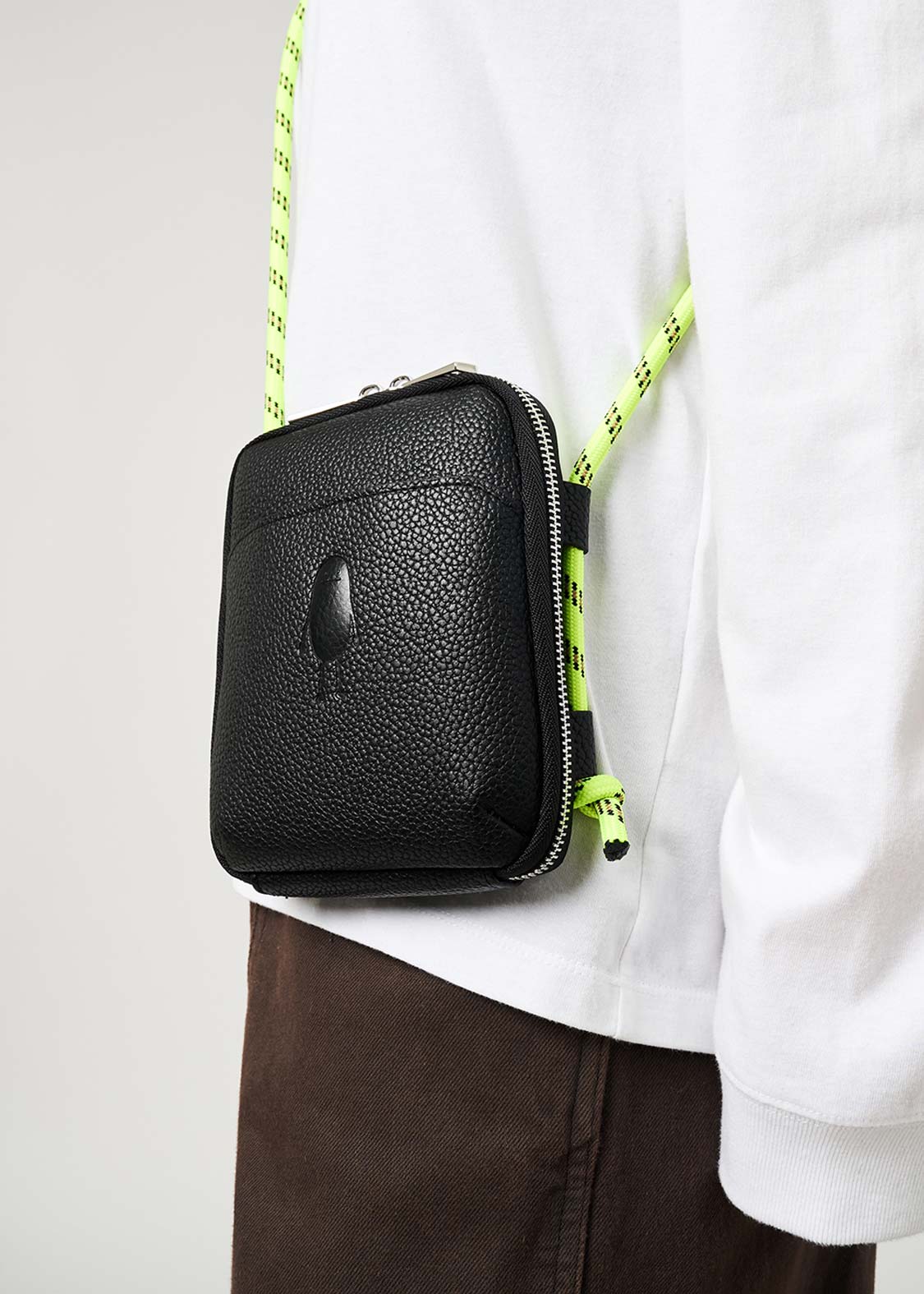 ・グラフィックを型押しで表現したウォレットショルダーバッグ。