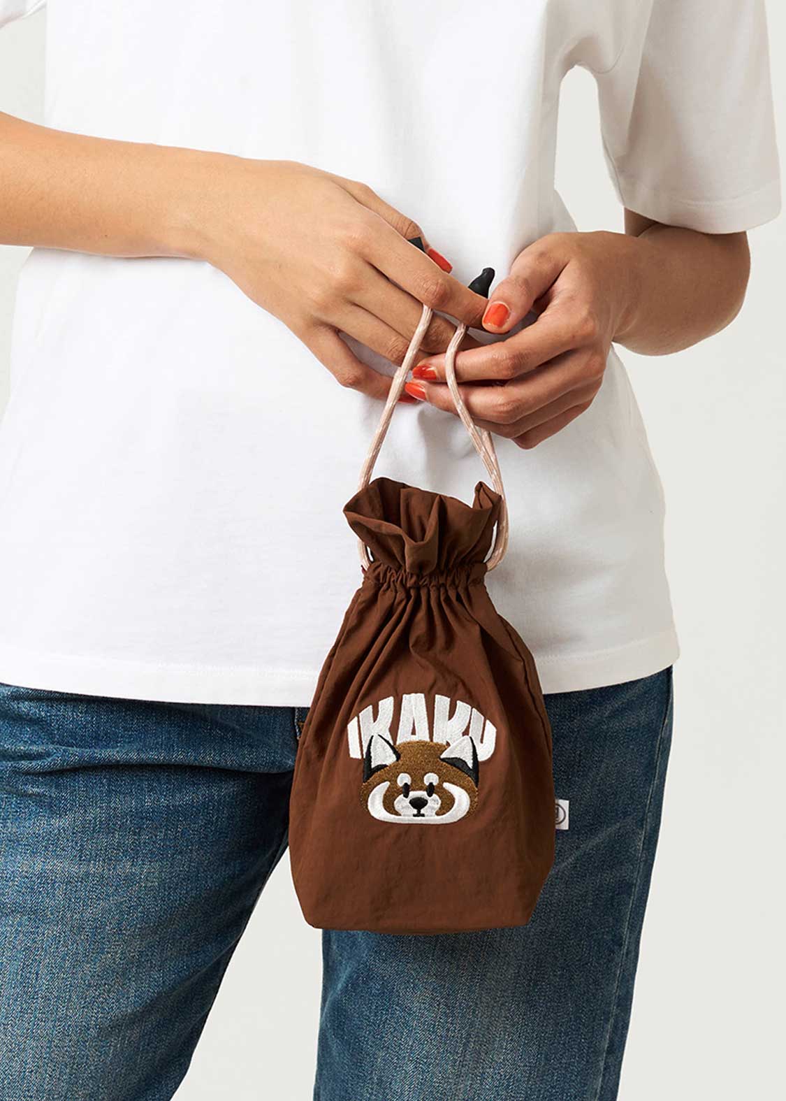 ・巾着ポーチに多少の汚れがついても、拭き取りやすい生地を採用。