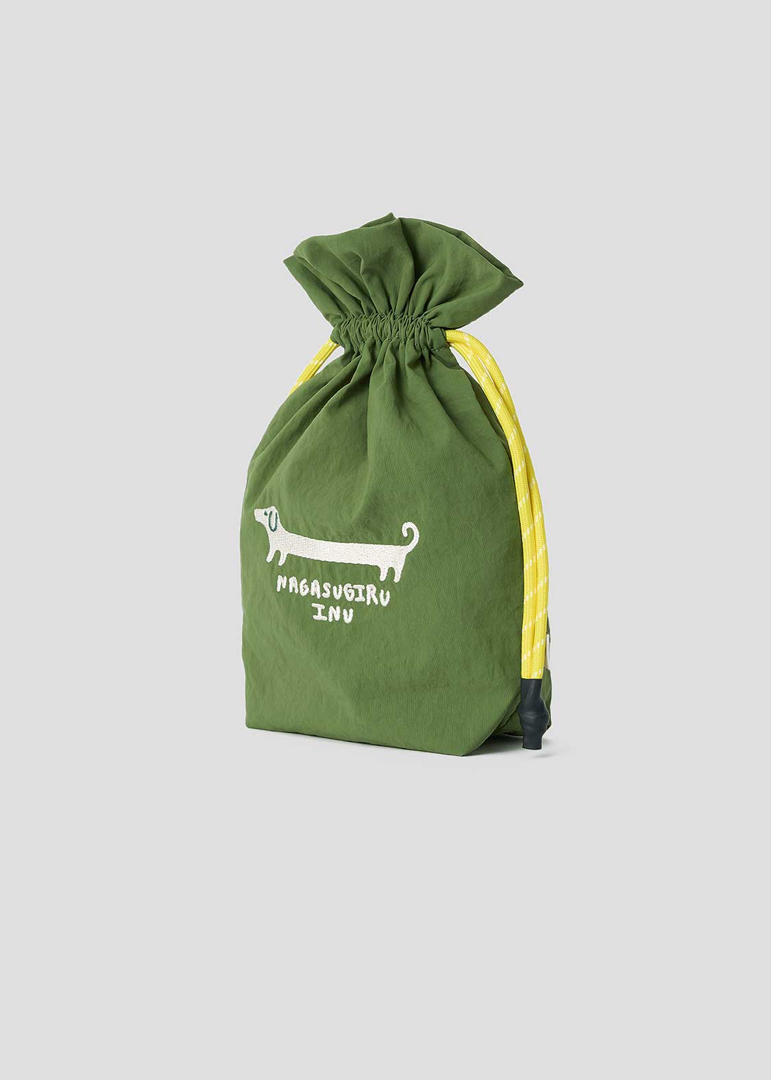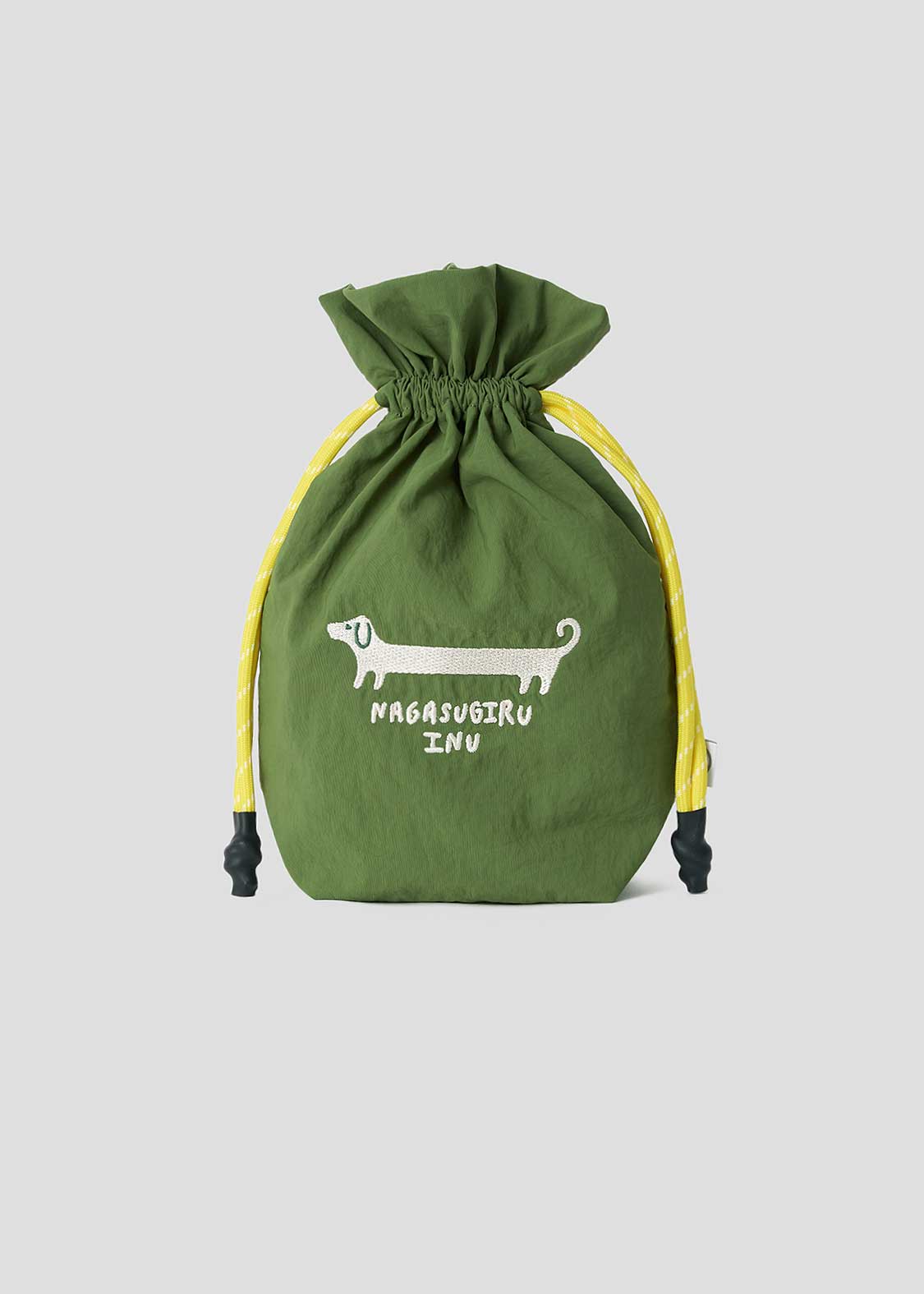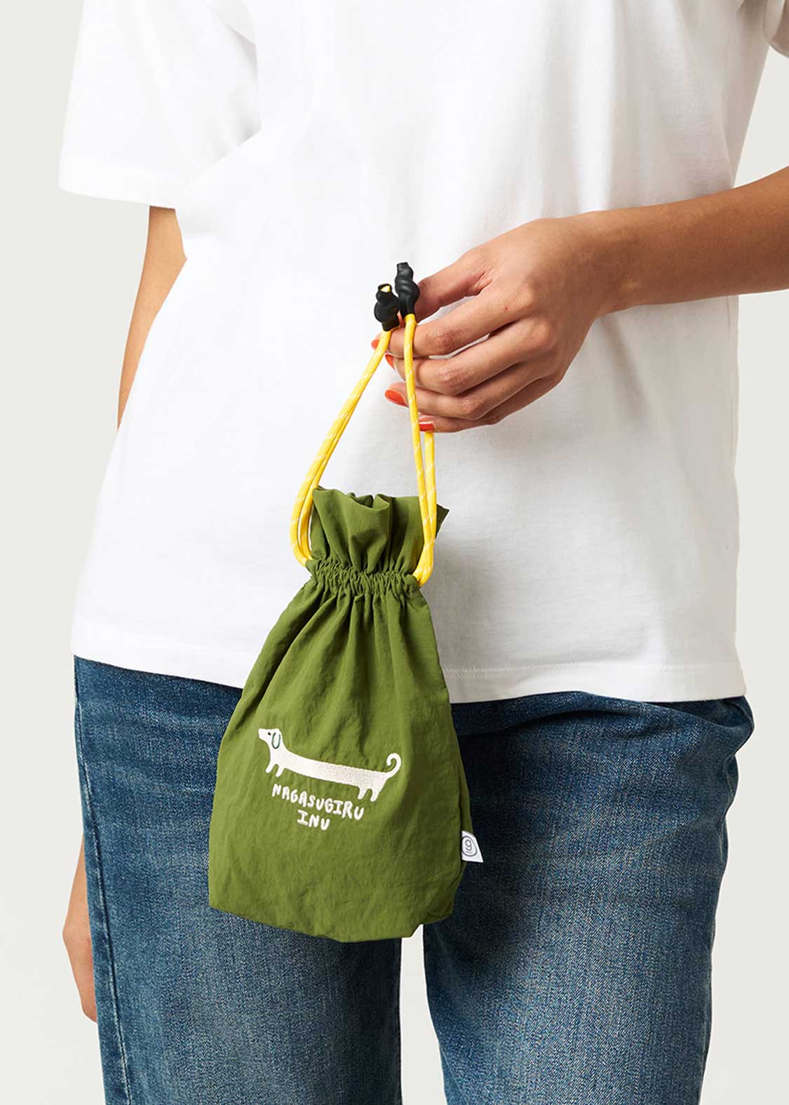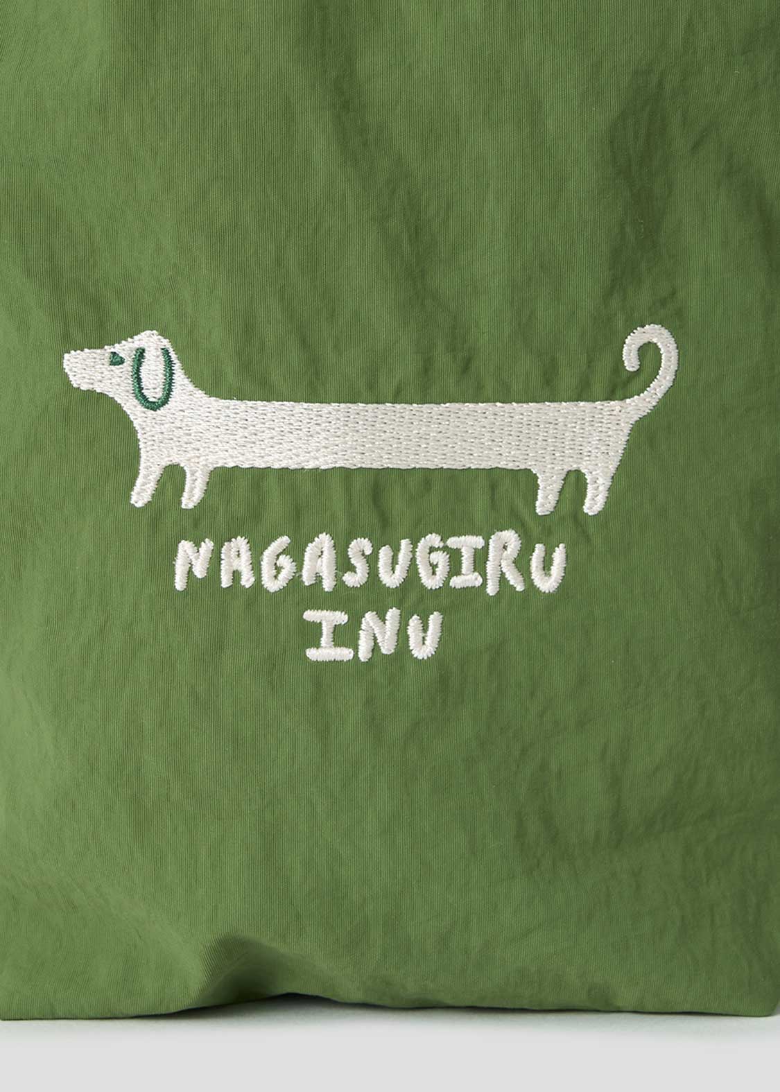 びよーんと伸びた長い胴、ロゴにもある通りまさに「ナガスギルイヌ」。決してダックスフントではなく、あくまで「ナガスギルイヌ」なのです。ユニークなコンセプト、思わず和んでしまう癒やしに溢れた作品です。