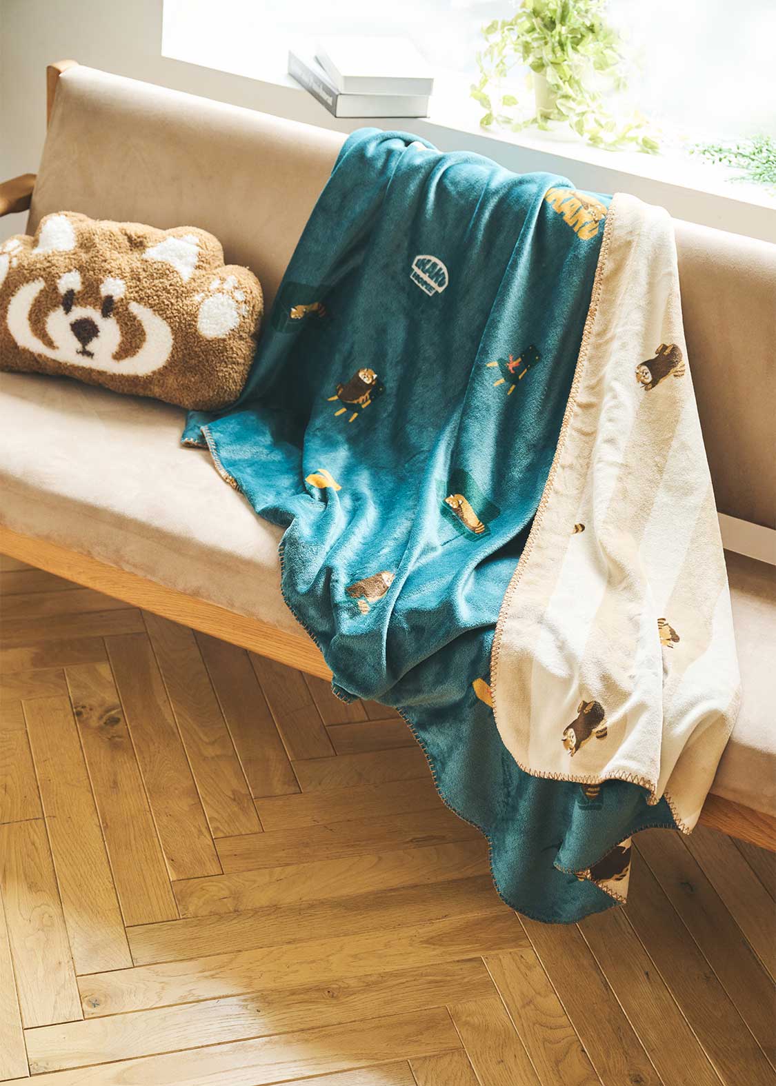 ・ふんわりとあたたかいフランネル素材を使用したブランケット。