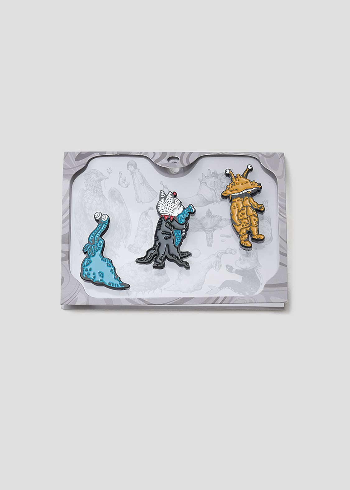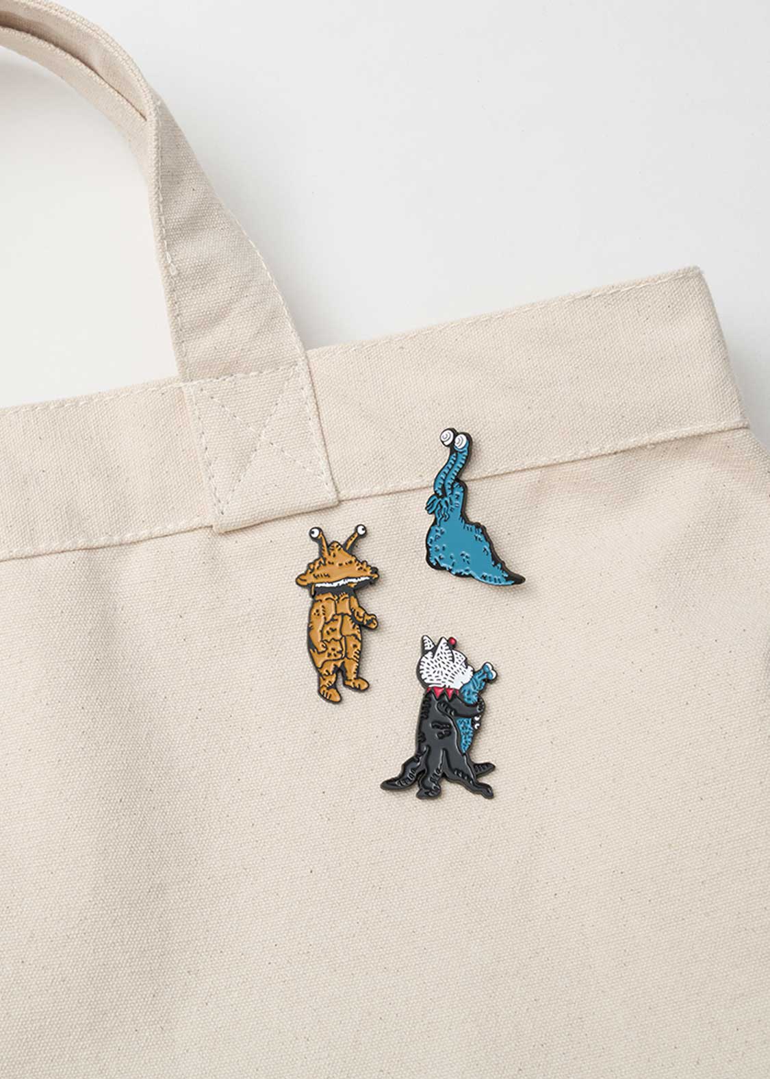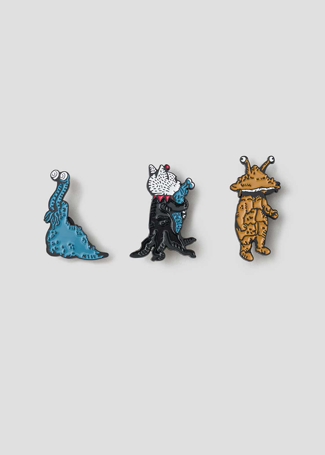 画家・ヒグチユウコが描く特別なコラボレーションデザイン。ウルトラ怪獣のフィギュアコレクションをイメージして描かれたナメゴンとカネゴン、そしてナメゴンのフィギュアを抱えるギュスターヴくんの3体がセットです。パッケージには、そのほかの怪獣たちも描かれた贅沢な仕様となっています。