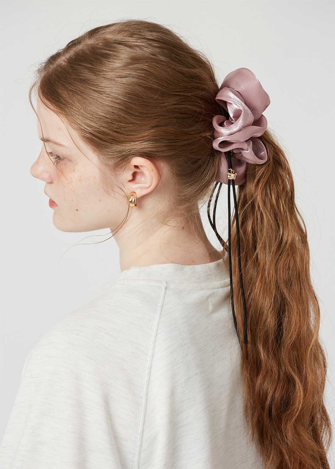 ・シュシュのフワッとした生地感を最大限に活かしてヘアセットできるアイテムです。