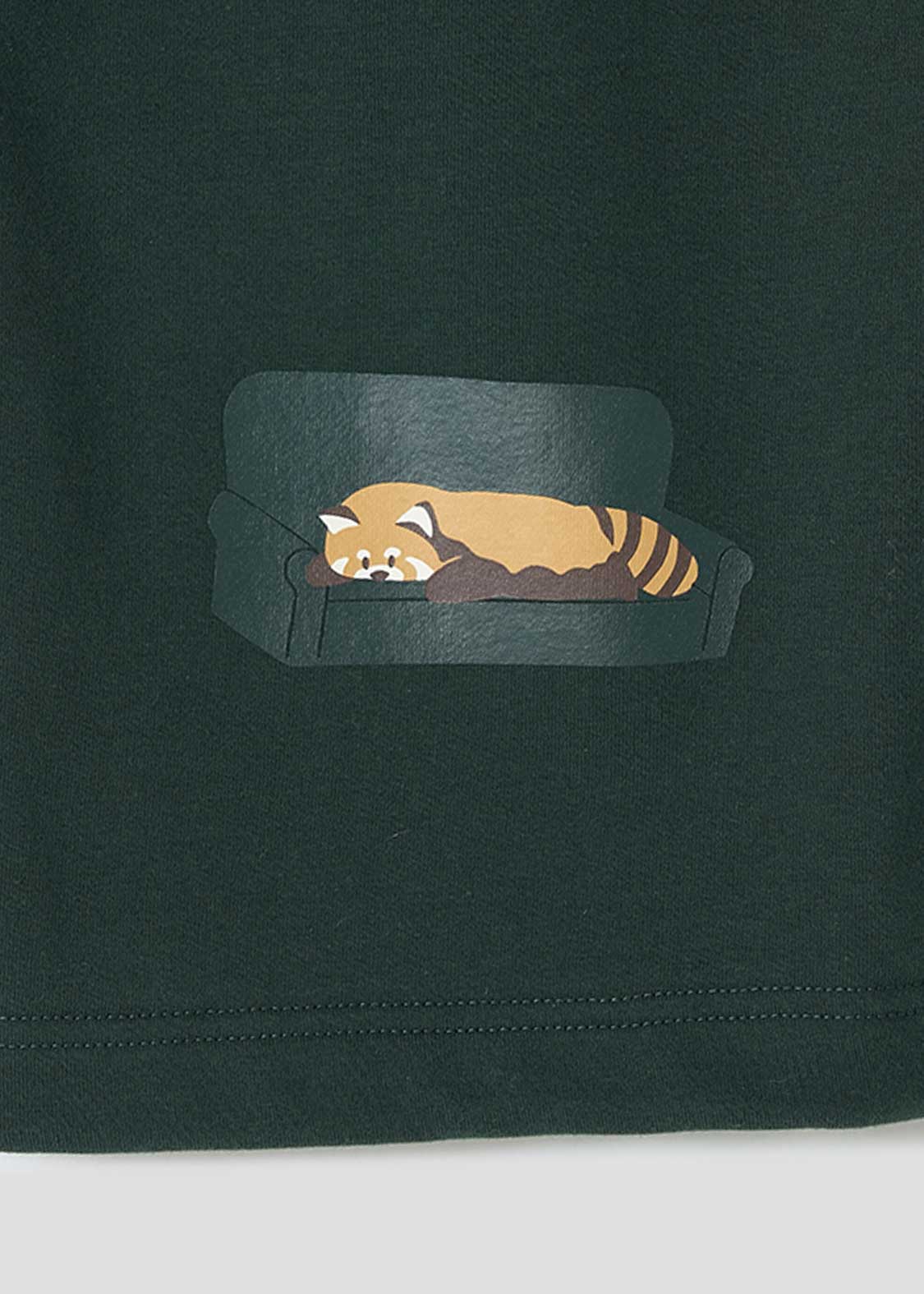 イスに座ってくつろぎながらも威嚇は欠かさないレッサーパンダ。キュートでありながら、シンプルなデザインに仕上げたところがポイントです。