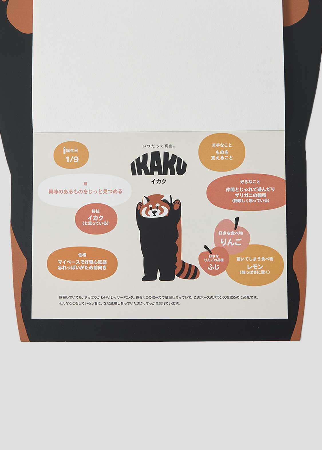 威嚇ポーズがかわいらしくなってしまうことで有名なレッサーパンダのデザイン。いくら威嚇していても、やっぱりかわいいレッサーパンダなのです。