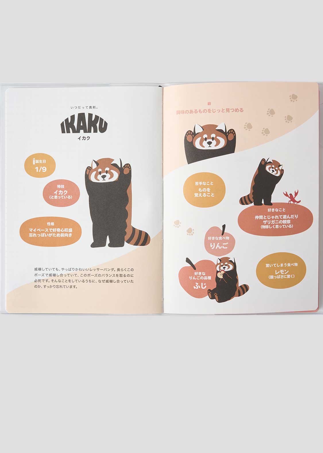 威嚇ポーズがかわいらしくなってしまうことで有名なレッサーパンダのデザイン。いくら威嚇していても、やっぱりかわいいレッサーパンダなのです。