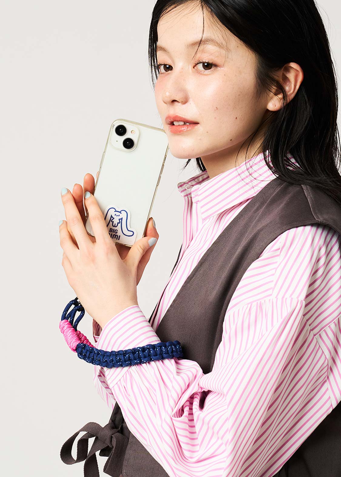 ・手首で短くスマートフォンを支えるハンドストラップ。